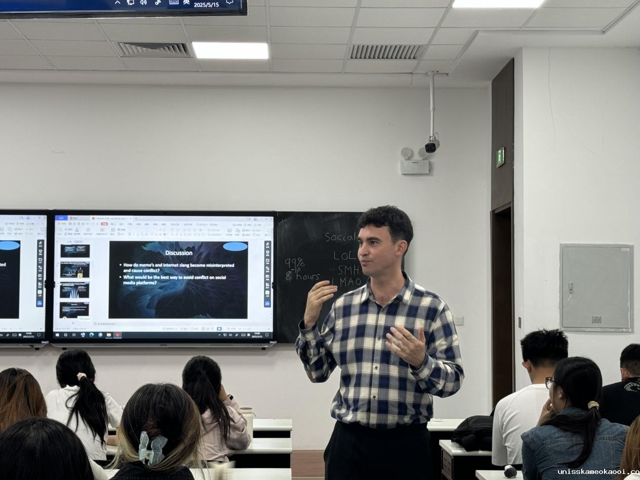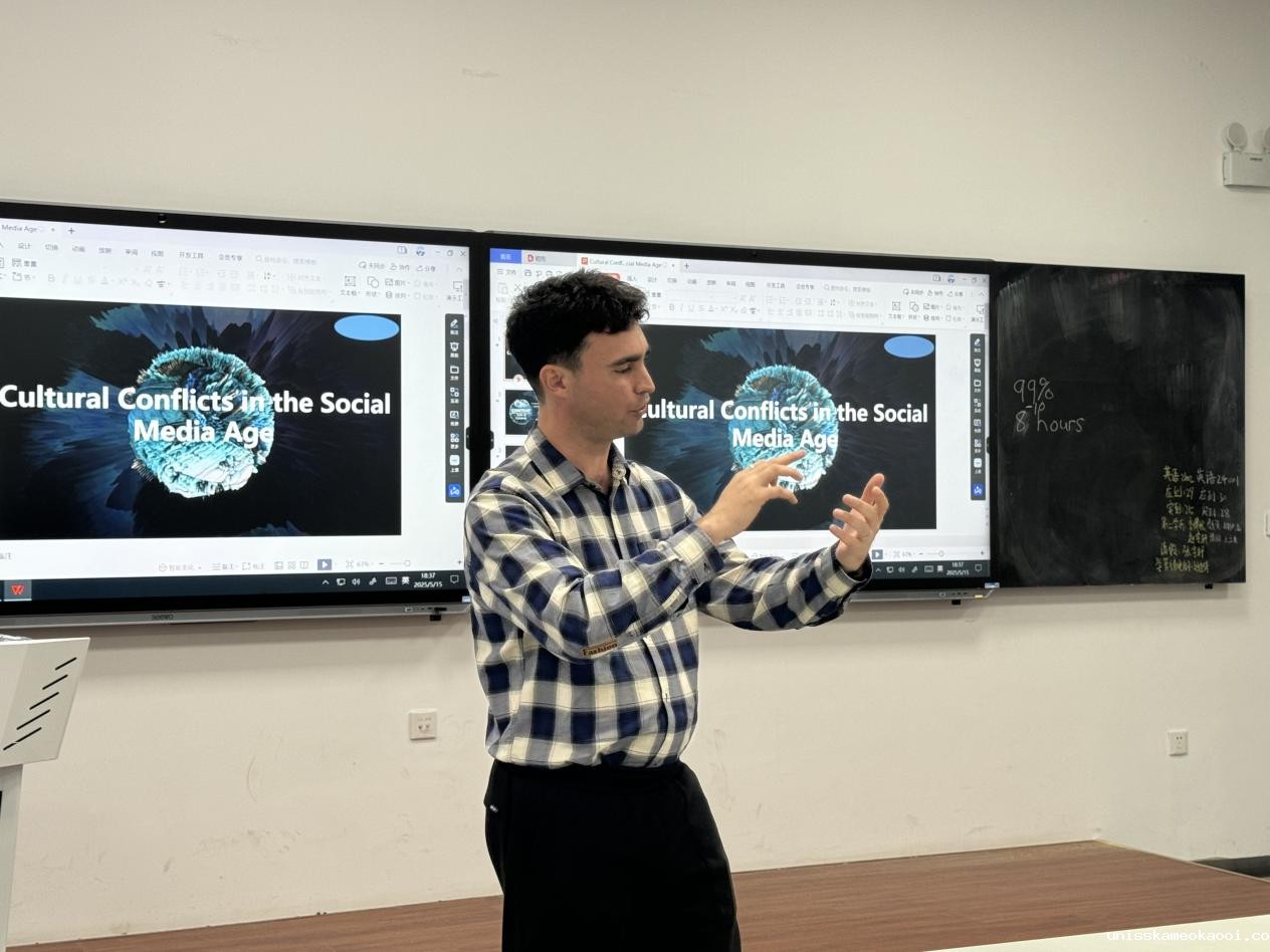 5月15日,我们熟悉的外教Julian老师以“社交媒体时代的文化冲突”为主题,开启了一场别开生面的思想之旅。他化身数字时代的文化导游,用鲜活的热点案例、极具前瞻性的视角,带同学们穿越社交平台构建的虚拟丛林,探寻不同文化在数字世界碰撞迸发的火花,现场讨论氛围热烈,求知的目光与思维的光芒交织闪烁。